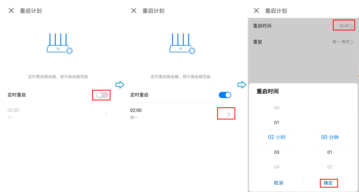 “重启计划”应用让您可以配置路由器在任意时间自动重启,让路由器时刻保持最佳状态,提供更好的上网体验。