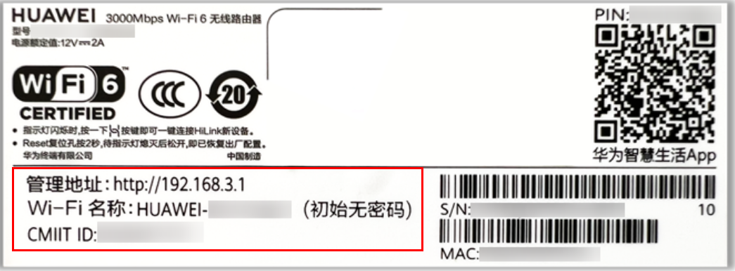 1. 将手机/电脑连接到路由器默认的 Wi-Fi(Wi-Fi 名称如下图所示,一般在路由器机身底部的贴牌即可查看,通常初始无密码)。