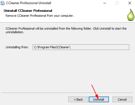 • 在“卸载 Ccleaner”对话框中,单击底部中间按钮的“卸载”按钮。
