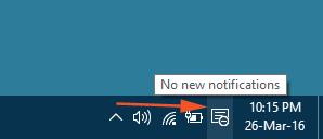 • 在系统托盘上,点击“通知”符号,该符号在任务栏的最右上角可见。
