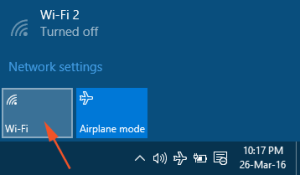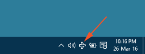 • 在代替“网络”符号的“系统托盘”中,您将看到一个“飞机”符号,要访问WiFi,您需要单击或点击该“飞机”符号。