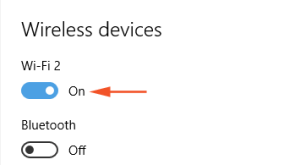 • 您将看到另一个名为“无线设备”的标题,“WiFi”和“蓝牙”选项都将“关闭”。