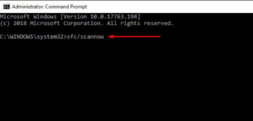 • 将出现一个闪烁的光标,显示在黑色窗口中。写sfc /scannow并按 Enter。