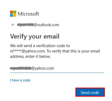 输入它要求的电子邮件 ID 或电话号码,然后单击发送验证码.