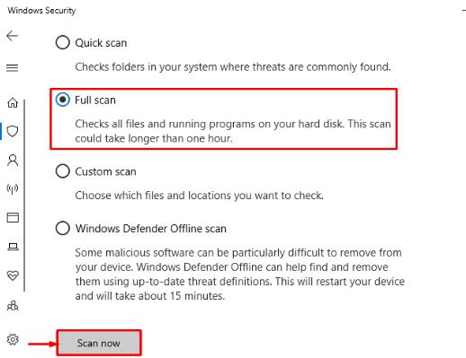 6. 在下一页上,选择单选按钮 完全扫描 然后单击 立即扫描 以启动该过程。