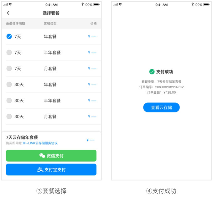 举例:7天循环存储月套餐,购买后默认不会立即生效,需要等到上一套餐到期失效后才能生效,循环保存最近7天内的动态检测录像。