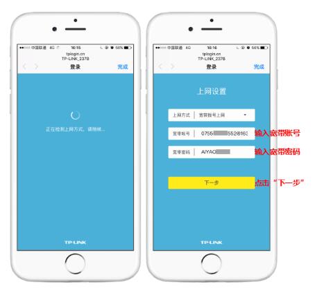 [4] 登录成功后,路由器会自动检测上网方式,根据检测到的上网方式,填写该上网方式的对应参数,如下图: