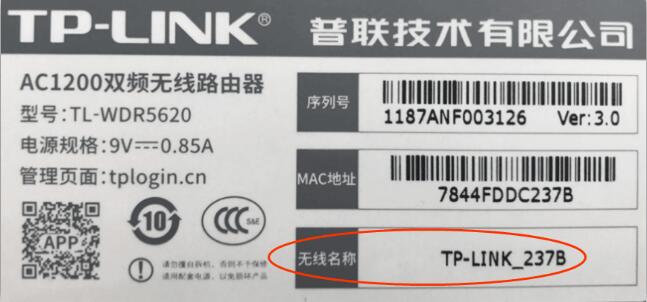 [1]在路由器的底部标贴上查看路由器出厂的无线信号名称。