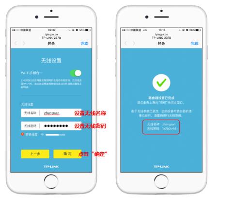 [5] 设置路由器的无线名称和无线密码,设置完成后,点击“完成”保存配置。请一定记住路由器的无线名称和无线密码,在后续连接路由器无线时需要用到。